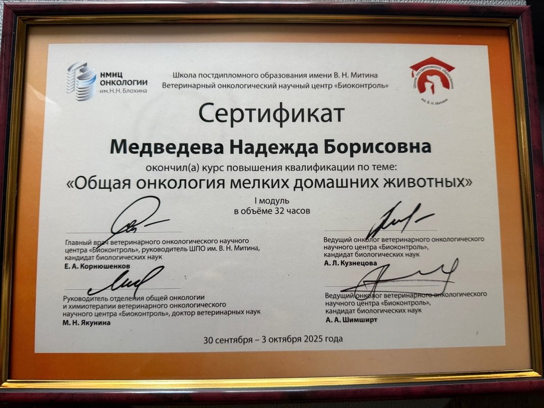 Надежда Борисовна практикует в таких областях ветеринарии, как дерматология, эндокринология и онкология. Если вашему питомцу понадобилась медицинская помощь, консультация узкого врача-специалиста окажется полезной для определения направления лечения.